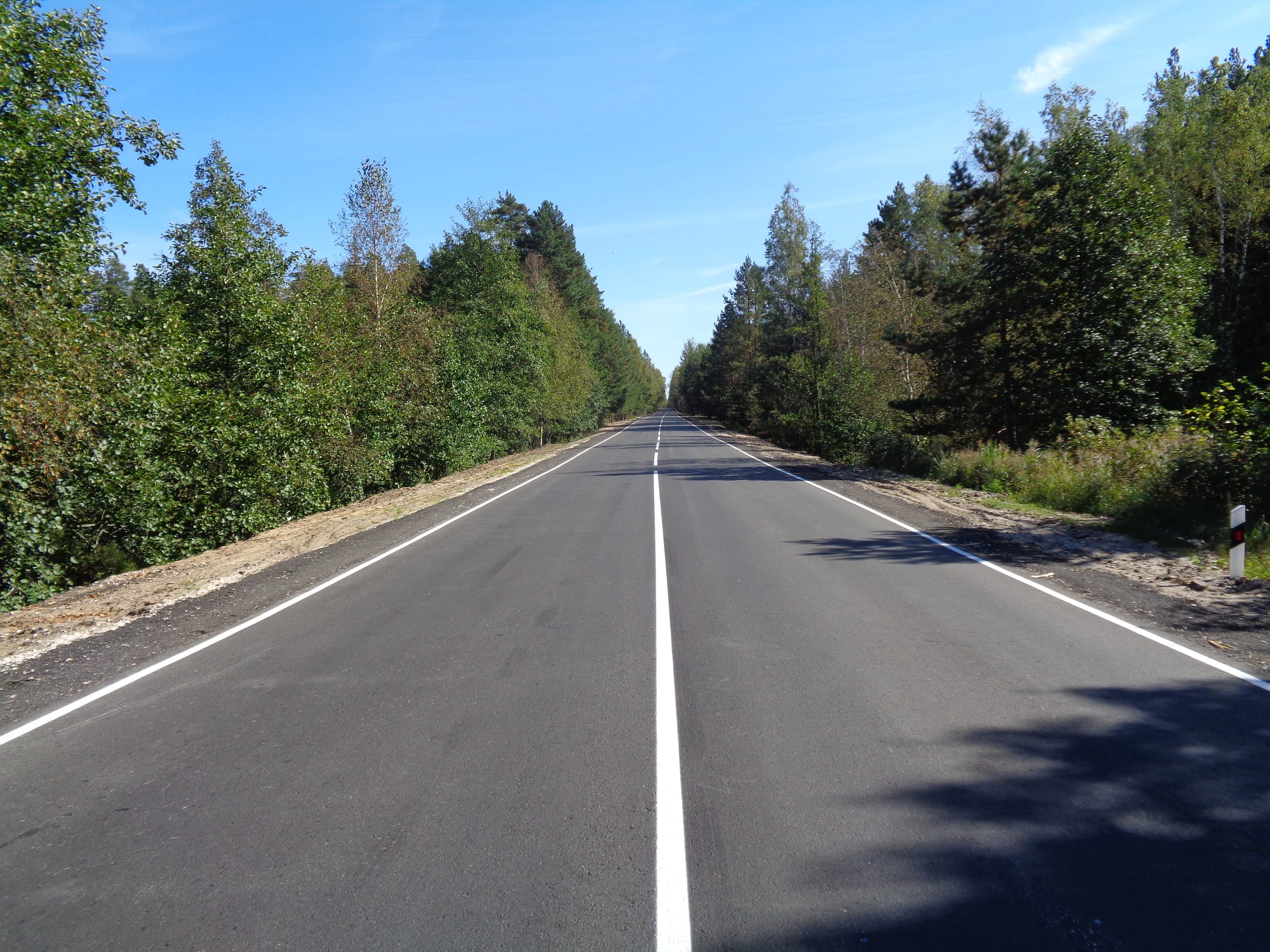 На обновленных участках выполнили укладку асфальтобетонного покрытия, укрепили обочины щебнем с последующей расклинцовкой гранулятом из асфальтобетонной крошки. Такая технология позволяет сделать обочины крепче и, даже если сюда съедет транспортное средство, они могут выдержать эту нагрузку. Кроме того, у остановочных пунктов рейсовых автобусов в деревне Василёво и на повороте к деревне Аббакумово обустроили заездные «карманы».